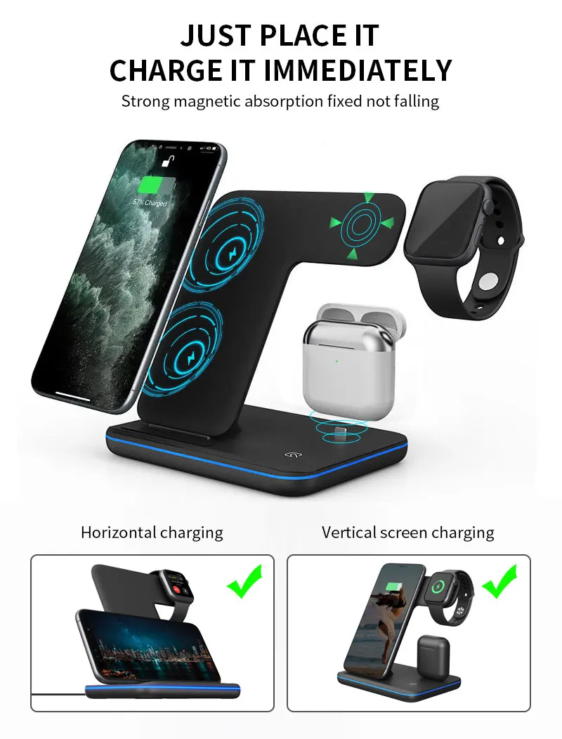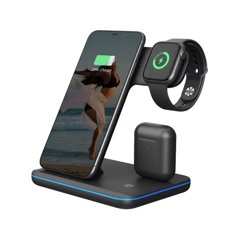Cargadores Carregador Multi 3 IN 1 Wireless Charger Docking Charging Station Ctand Pad Mobile Fast Phone Charge Wireless Charger