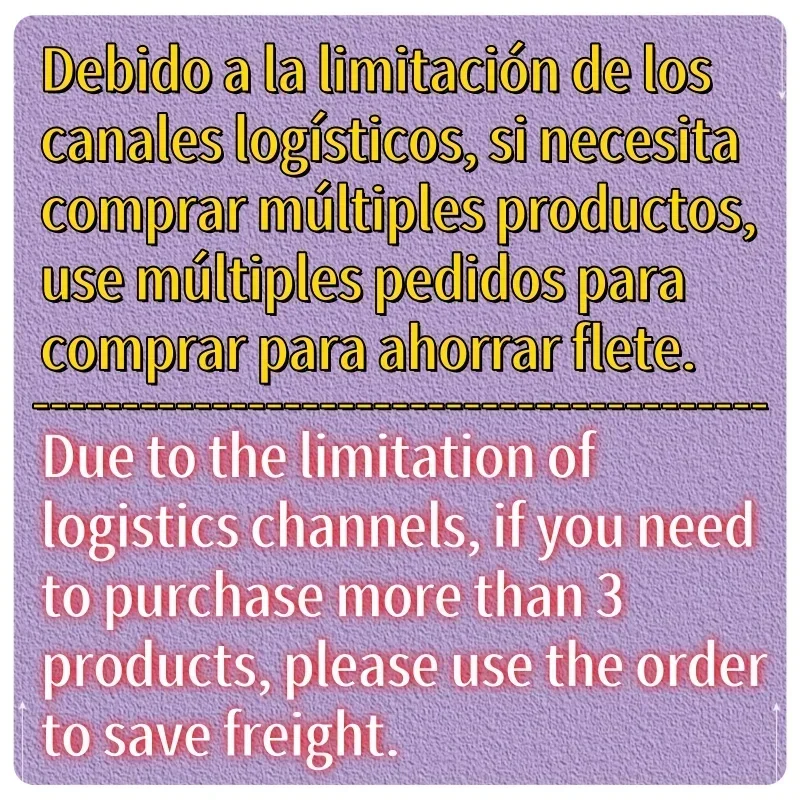 Debido a la limitación de los canales logísticos, si necesita comprar múltiples productos, use múltiples pedidos para comprar para ahorrar flete.