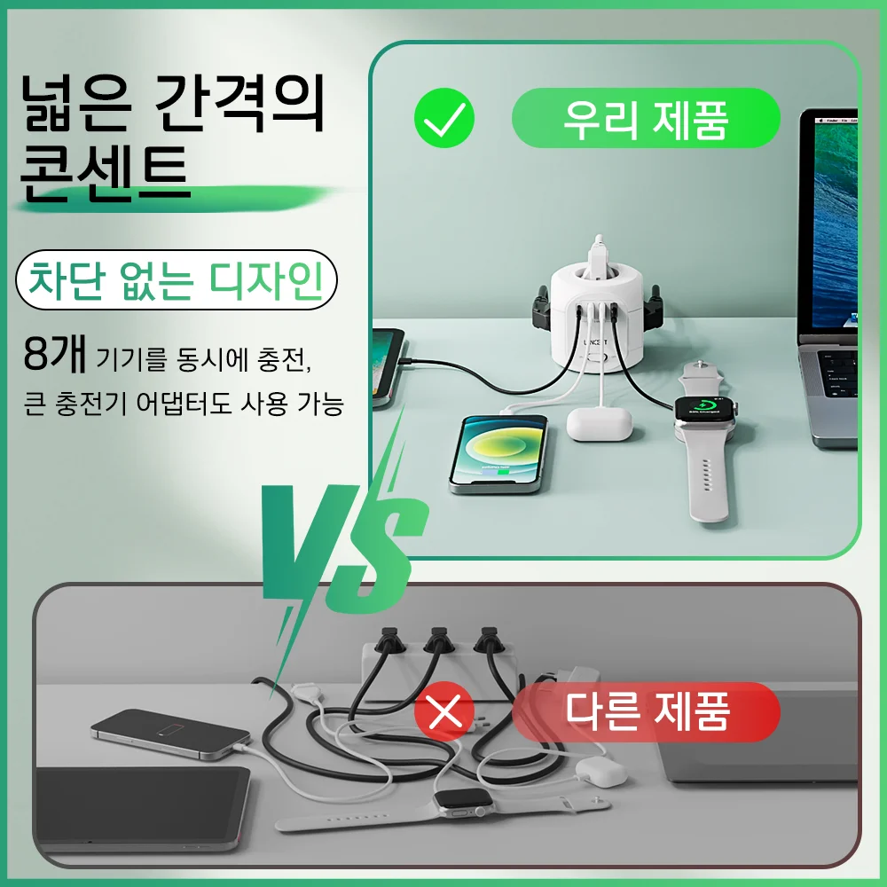 Unique plug socket design allows you to connect 4 large sockets, 3 USB ports and 1 Type-C port at the same time without hindering the use of neighboring sockets.